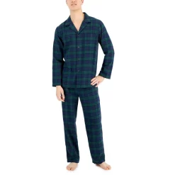 Promo โจ Club Room Men’s Heathered Solid Flannel Pajama Set, Created For Macy’s Navy Green โ