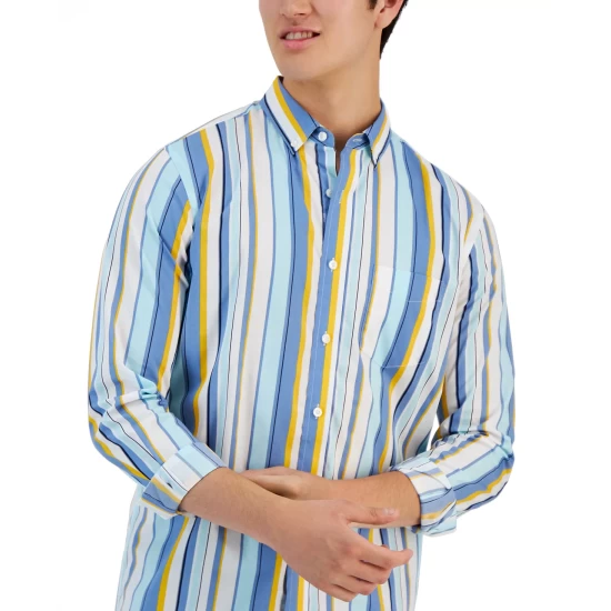 A flattering shape and print make this Benie long-sleeve shirt from Club Room a smart, stylish choice that will take you from season to season.