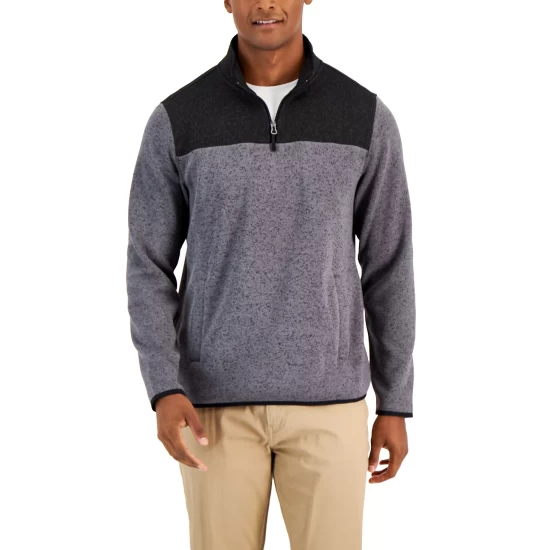Club Room adds a modern spin to casual attire with the solid fit and comfortable feel of this quarter-zip sweater.
