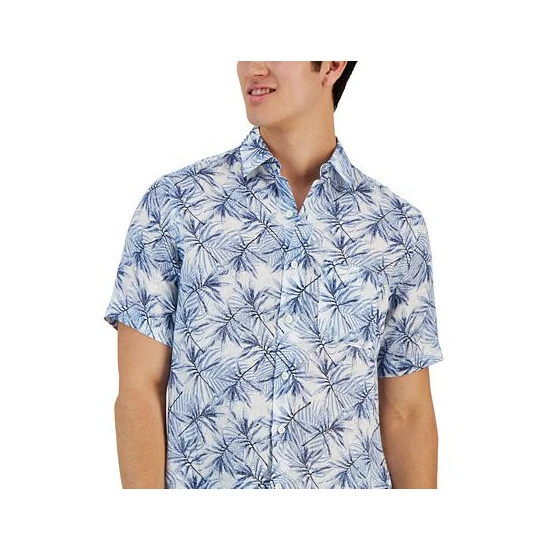 An allover leaf print and a pocket at the left chest are just two of the many features that make this Club Room short-sleeve shirt a brilliant choice.