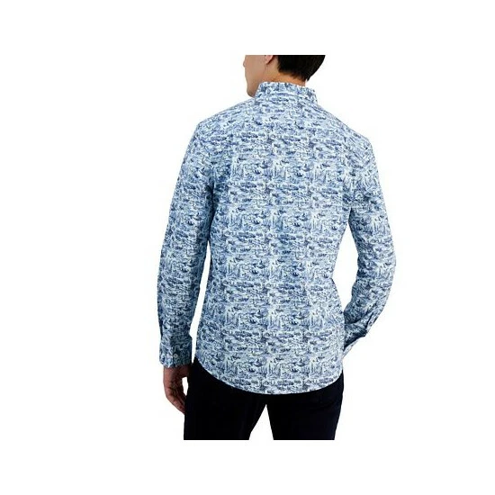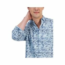 Catch some next-level style and comfort with the crisp poplin fabric and attention-grabbing graphics of this Gone Fishing shirt from Club Room.