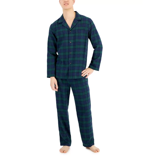 A simple heathered finish highlights the timeless look of this Club Room pajama set while soft flannel delivers a comfortable feel.
