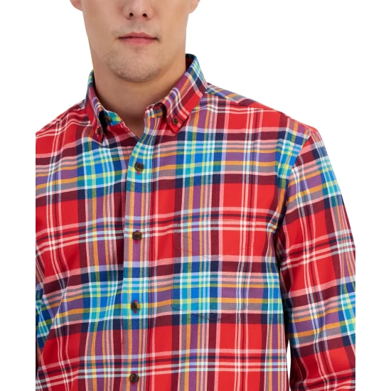 Celebrate the holidays in classic style and comfort with the timeless tailoring and festive plaid of this soft shirt from Club Room.