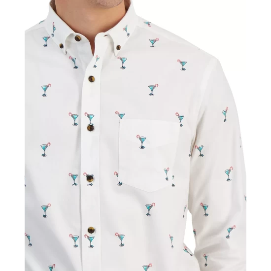 Bring some good cheer to your button-down look with the pattern of festive refreshments printed on this Holiday shirt from Club Room.