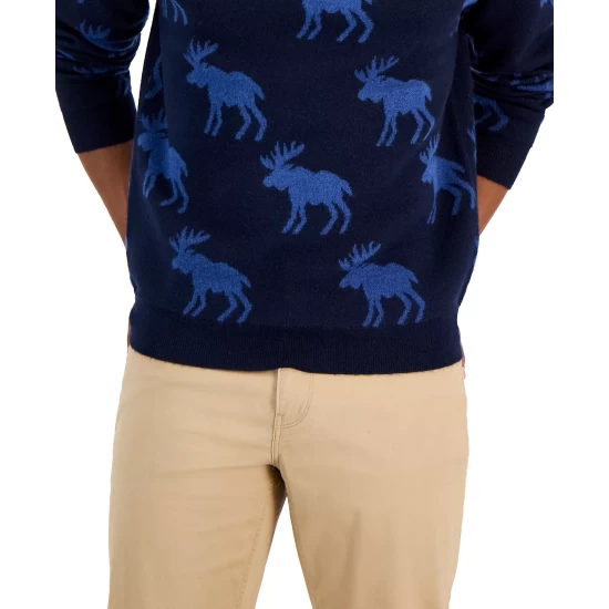 Club Room adds an adventurous spin to casual attire with the moose print and comfortable feel of this crewneck sweater.