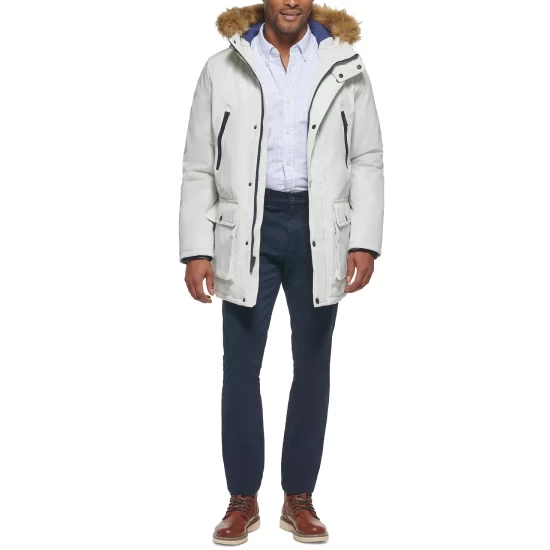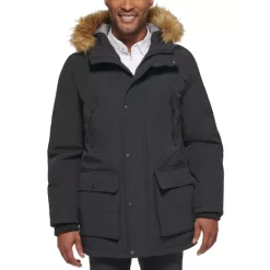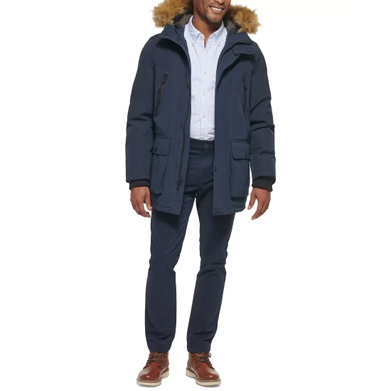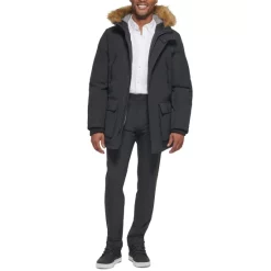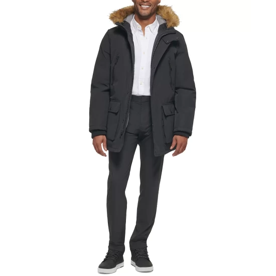Cozy cold-weather comfort and modern style brilliantly combine with the heavyweight lined build, clean design and faux fur hood of this versatile parka by Club Room.
