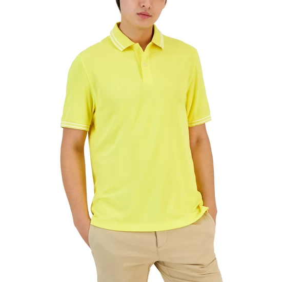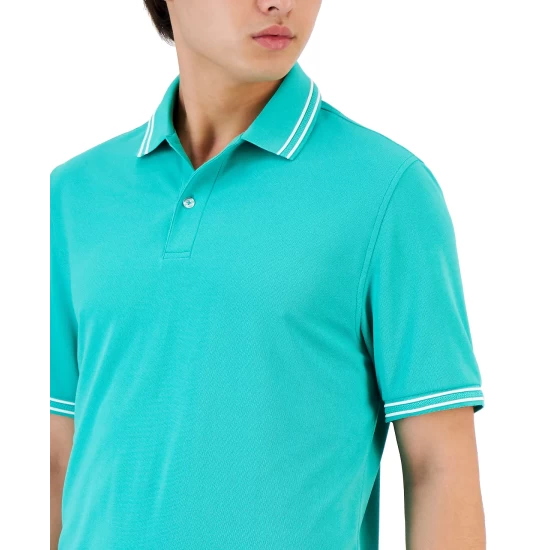 Contrast trim at the collar and cuffs lends the perfect pop of style to Club Room’s short-sleeve polo with moisture-wicking support.