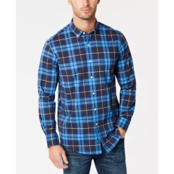 A crisp plaid design is accentuated with the stretch classic fit of this button-down from Club Room, and finished off with a bit of stretch for added comfort.
