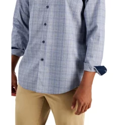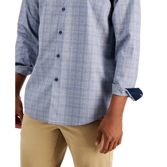 A crisp plaid print elevates the contemporary style of this lightweight cotton shirt from Club Room.