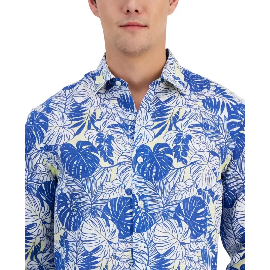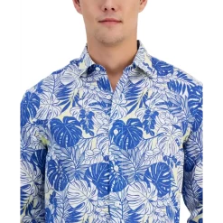 Step into the island-inspired comfort of this long-sleeve linen shirt from Club Room, showcasing long-sleeves and an allover tropical print.