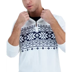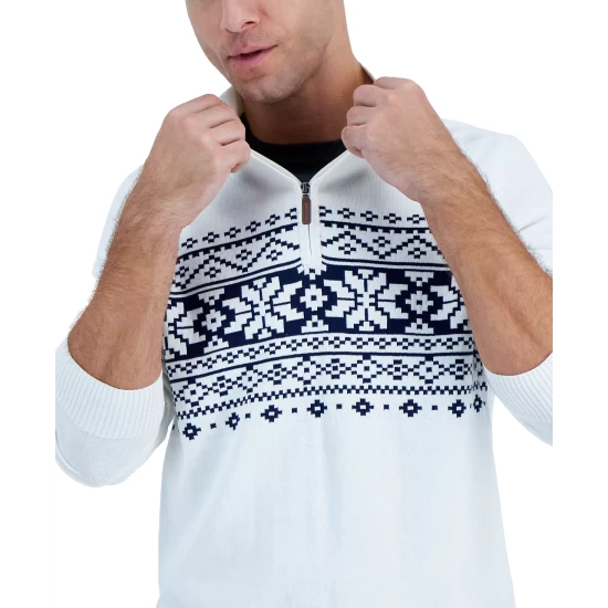 Elevate your everyday look with the fair isle print of this Club Room sweater, showcasing a quarter-zip closure that pairs perfectly with your favorite T-shirt and jeans.