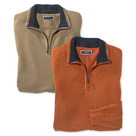 A classic layering piece, this all-cotton sweater from Club Room is finished with a quarter-zip closure.