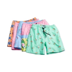 Add a refreshing flourish of tropical style to your poolside essentials with the fun flamingo prints featured on these vibrant quick-dry swim trunks from Club Room.