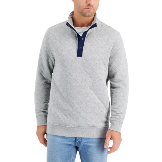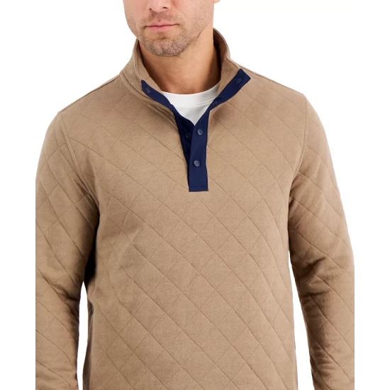 A contrast-trim snap placket and easy pullover styling make this quilted Club Room sweater a standout addition to your cool-weather wardrobe.
