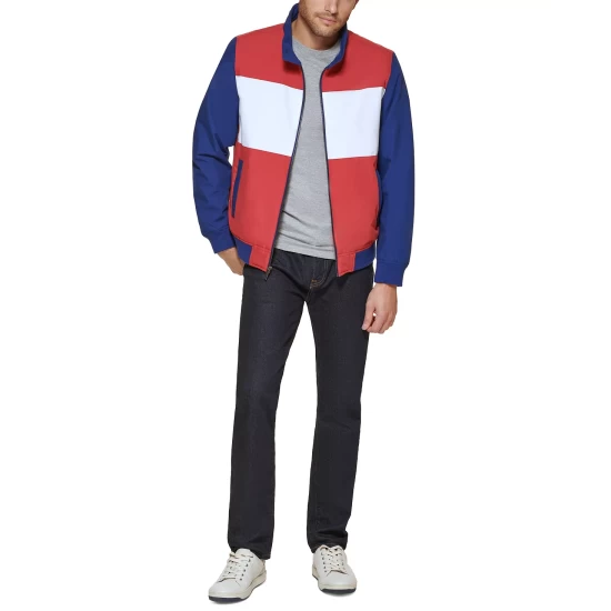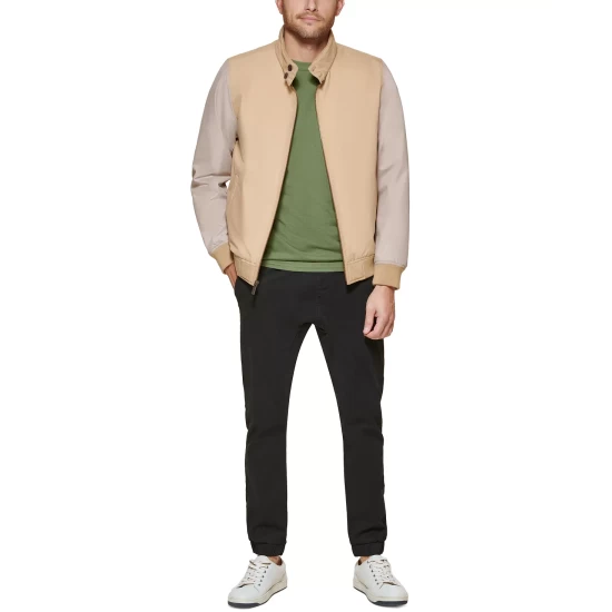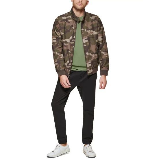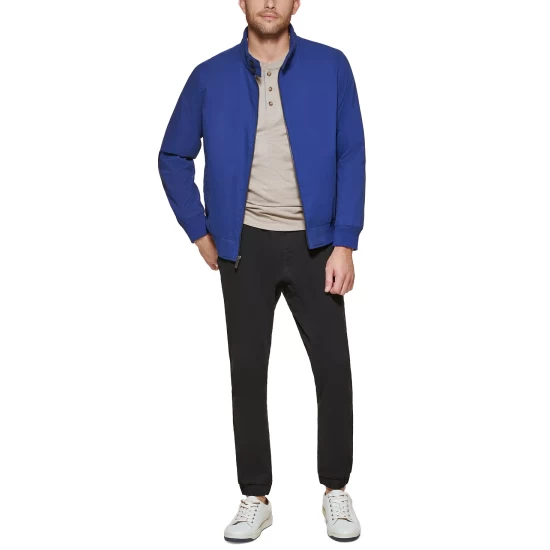 Add a layer of style and comfort to your transitional-weather look with the lightweight water-resistant design of this bomber jacket from Club Room.