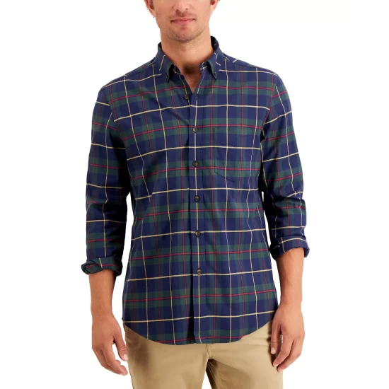 Club Room makes it easy to get up and at ’em with the comfort and style of this business-casual button-front in stretch cotton.