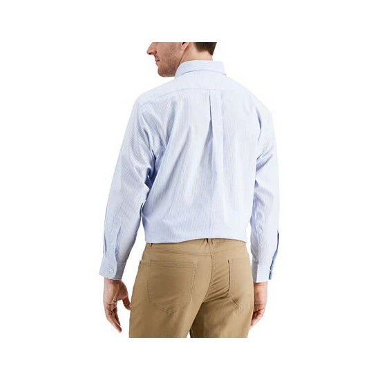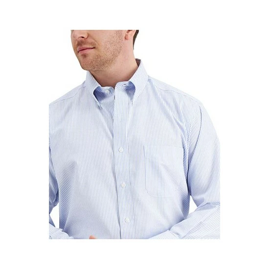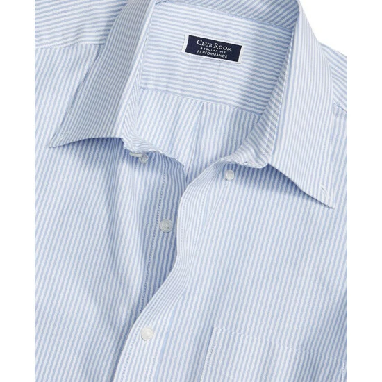 Go for a classic look with the casually refined button-down collar and soft-tone stripes of this Club Room dress shirt. Its stretch design and crisp cotton finish complement its looks with enduring comfort.
