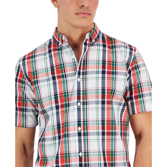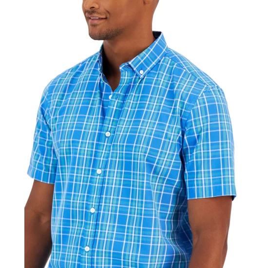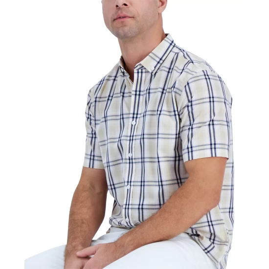 Dress up casual attire with the cool plaid print of this short-sleeve shirt from Club Room, featuring a classic button-down silhouette.
