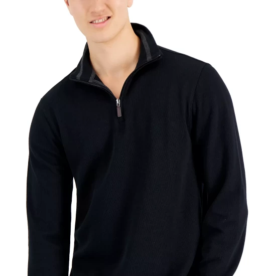 Boasting a contrast stripe at the inner collar, this solid quarter-zip sweater from Club Room is as comfortable as it is stylish.