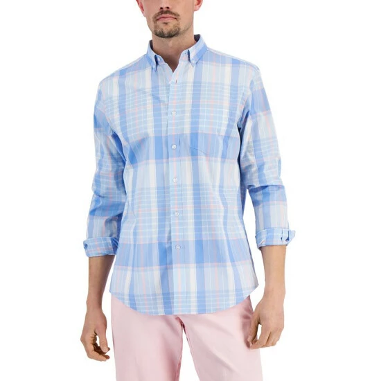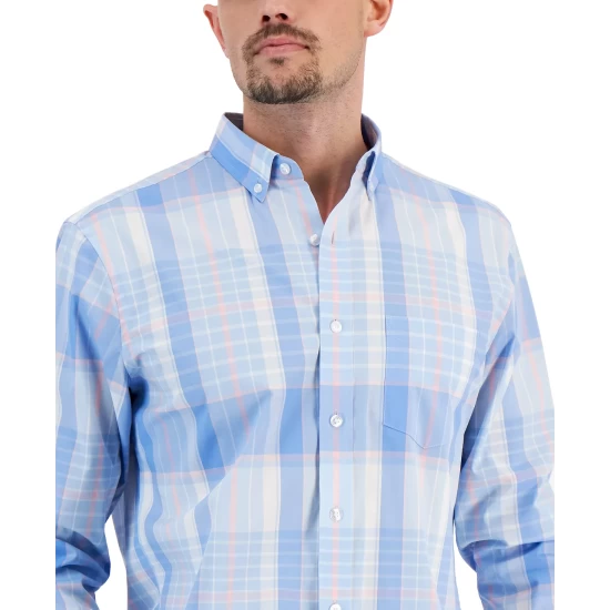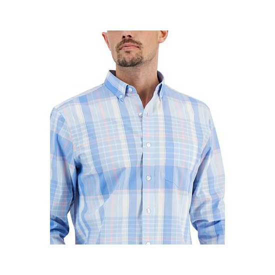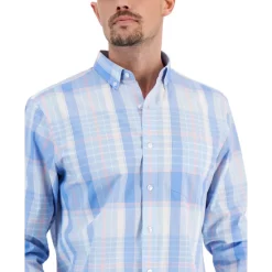 Club Room Men’s Spotlight Plaid Shirt is designed with classic button-down styling, a dynamic plaid print and button cuffs.