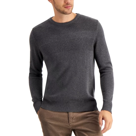Subtle texture creates the refined look of this all-cotton crewneck sweater from Club Room.