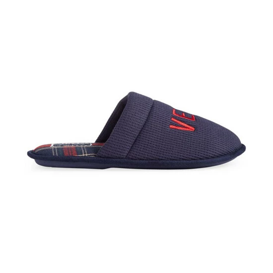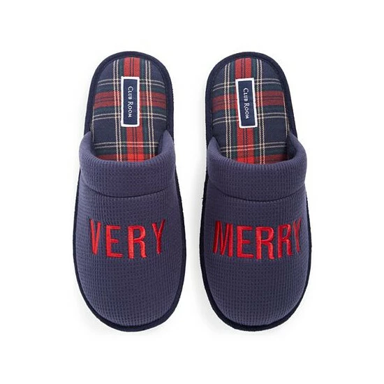 Celebrate the season in style with the warm waffle-knit uppers and cheerful embroidered message featured on these Very Merry slippers from Club Room.